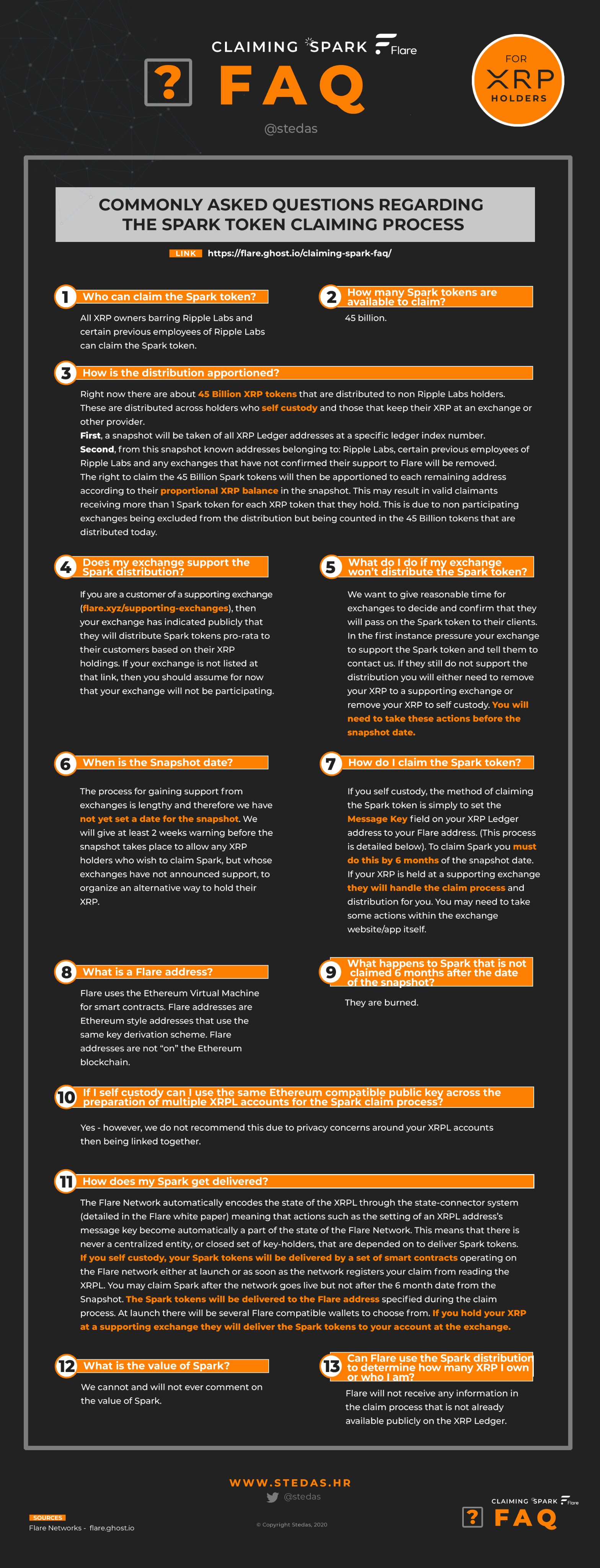 Spark token distribution date. Users must have held the XRP tokens consecutively between 0000 on 11122020 GMT and 0000 on. Once snapshot is taken then user will have 6 months to claim Spark token and if. The Spark tokens will be delivered to the Flare address specified during the claim process.